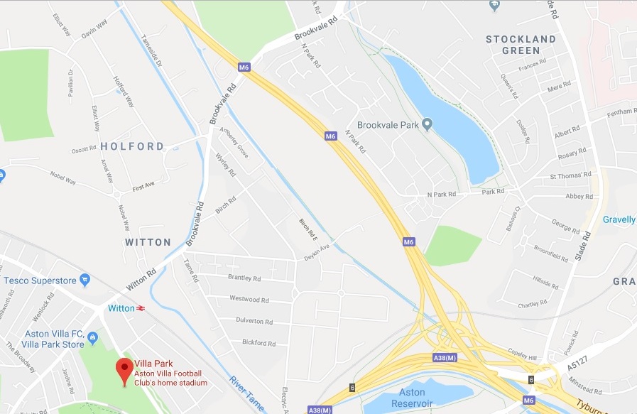 Whether taking the M6 or A38 you will pass somewhere close to Jct 6. The traditional route would be to head south via A38 or east as direct as you can and take what seems the quickest route towards the stadium. However, unless you are arriving early then I would recommend heading north off the M6 using Slade Road / George Road / Brookvale Road (see bottom right of the map below) and going around the back. Mainly because otherwise you risk getting caught up in city centre traffic flow. Having worked close to Villa Park in the recent past it’s certainly what I will be doing.