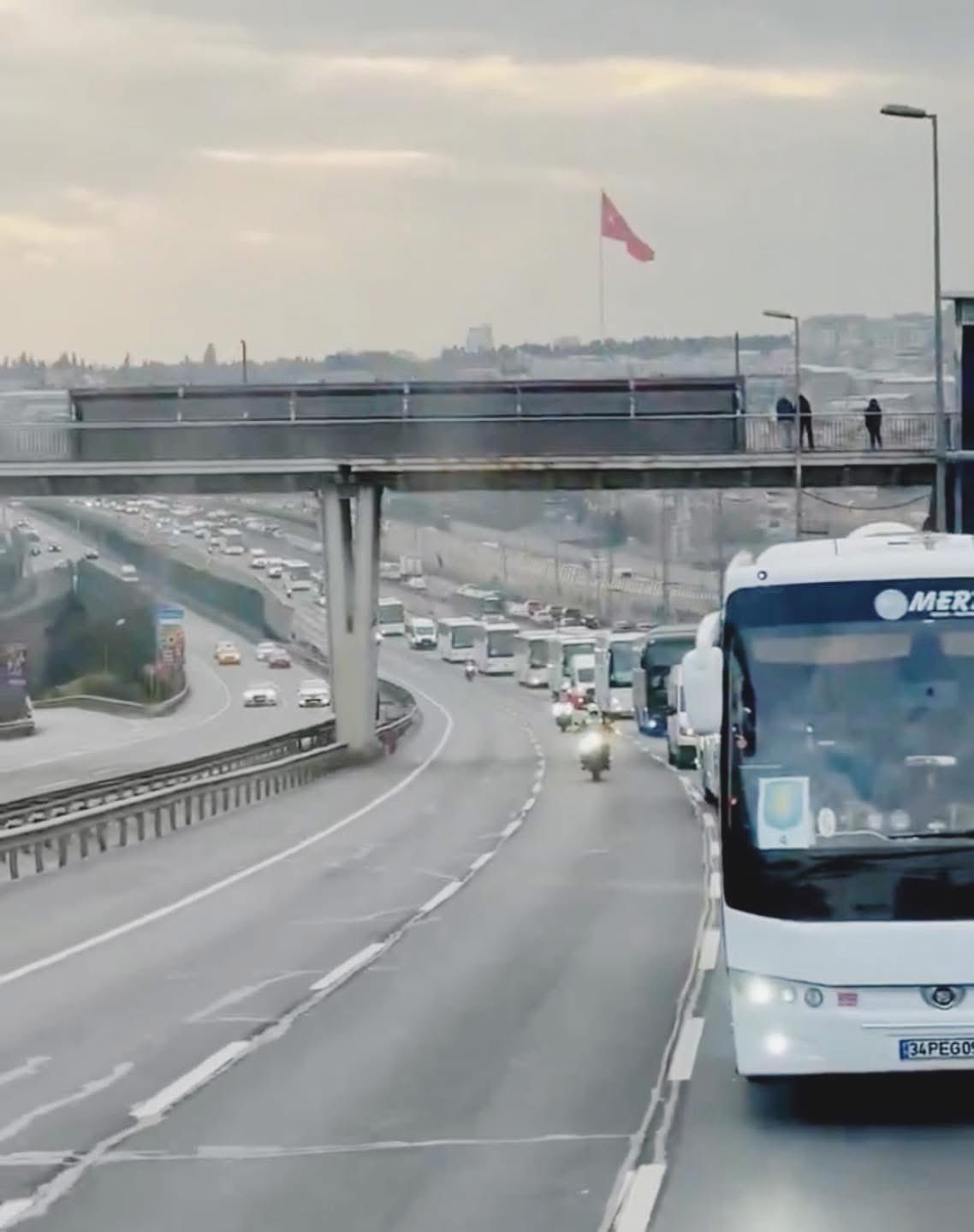 The bus escort for Villa fans in Sultanahmet Square (pic courtesy of Dave Bytheway)