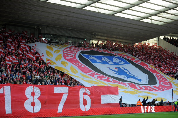 The Red Faction. They stand sing and bang the drum behind the South Stand goal. They are good for the club; they create some great atmospheres inside the ground in my opinion although I’d take away the drum as I don’t believe we need it but it’s there thing. They have the odd bad moment which gets them in bother; pyrotechnics etc but then they also do some great giant displays and banners. I think anyone trying to help create a good atmosphere to get behind the team is always good for the club.