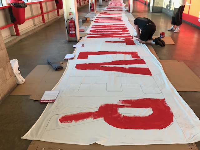 Last week I volunteered to help out with Forza Garibaldi’s latest, and most ambitious, effort to improve the atmosphere at our home the City Ground. It was amazing to be involved and see the end result which, I’m sure you’ll agree, did them great credit. It’s worth reiterating at this point that Forza are an independent fan group. And so while you might see flags or cards at other football stadiums they are usually bland, corporate efforts to improve a club’s image with little or no actual fan involvement. Although it’s great that the club have allowed Forza access to the stadium and embraced its agenda, make no mistake that this is something special, something just for us.